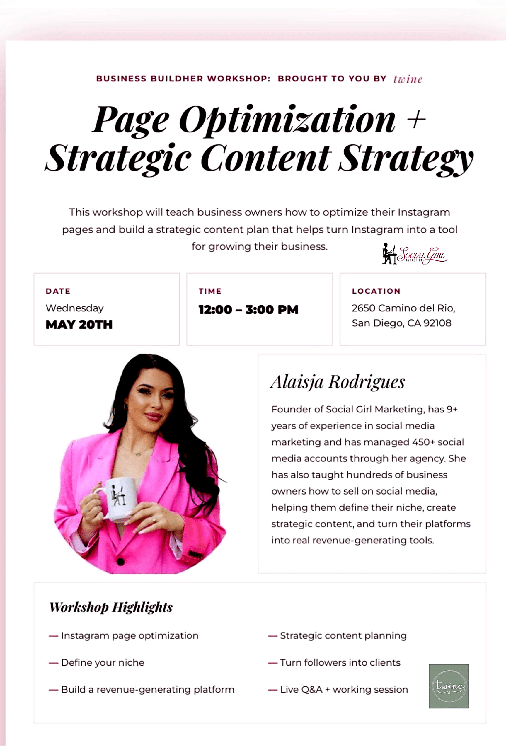 In this hands-on workshop, Alaisja from Social Girl Marketing cuts through the noise and shows you exactly how to turn your Instagram into a clear, strategic extension of your business. No more guessing what to post. No more overwhelm.