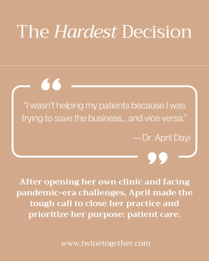 “I wasn’t helping my patients because I was trying to save the business. And I wasn’t saving the business because I wanted to help my patients. Closing the clinic was heartbreaking… but it was also the right call.”