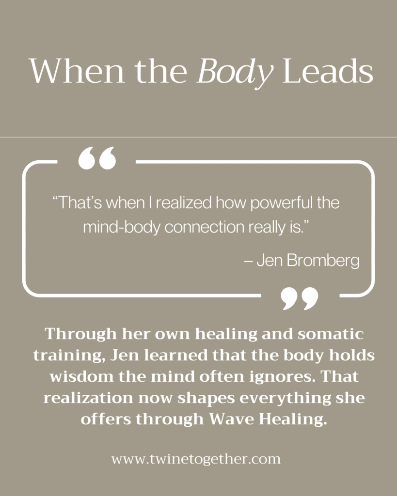 While transitioning from corporate life to entrepreneurialism, Jen has learned to define success differently than she once did. Flexibility, integrity, and alignment matter more than titles or timelines. Building Wave Healing has required unlearning hustle and allowing space for sustainability.