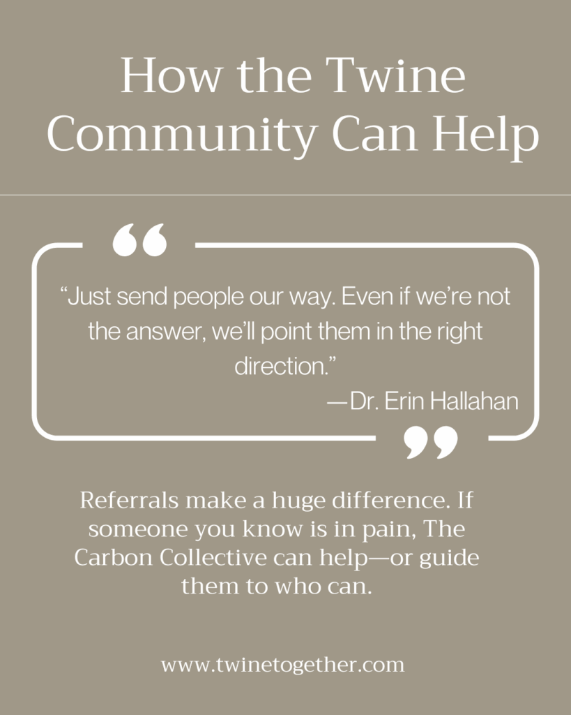 The best way to support The Carbon Collective? Word-of-mouth referrals. If someone in your life is dealing with pain, injury, or chronic discomfort, Dr. Erin’s team can either help directly—or guide them to the right provider.