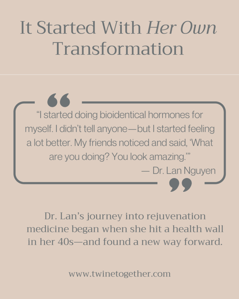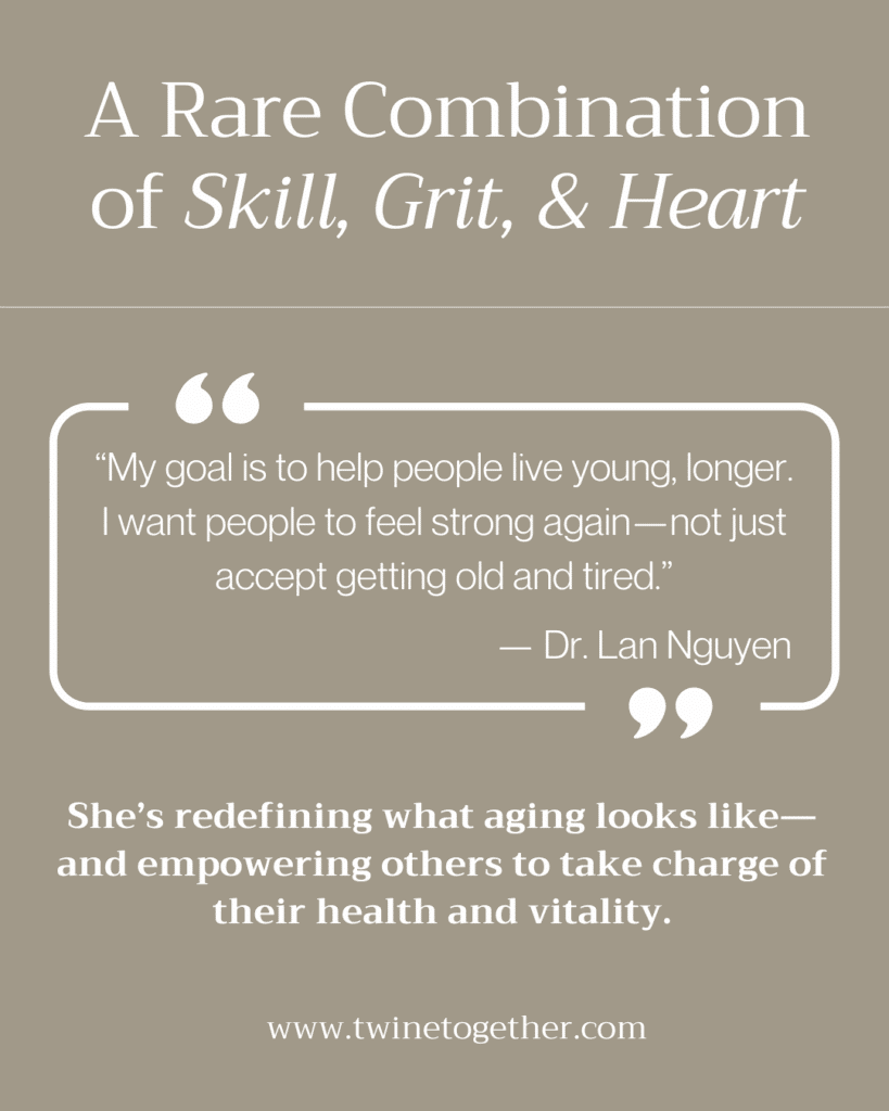 Whether she’s in the operating room, behind the syringe, or educating women on how to take charge of their hormones, Dr. Lan Nguyen is quietly leading a revolution in how we age. With unmatched medical credentials, a personal transformation story, and a deep passion for helping others feel strong, vibrant, and in control, she’s proving that aging well is not only possible—it’s powerful.