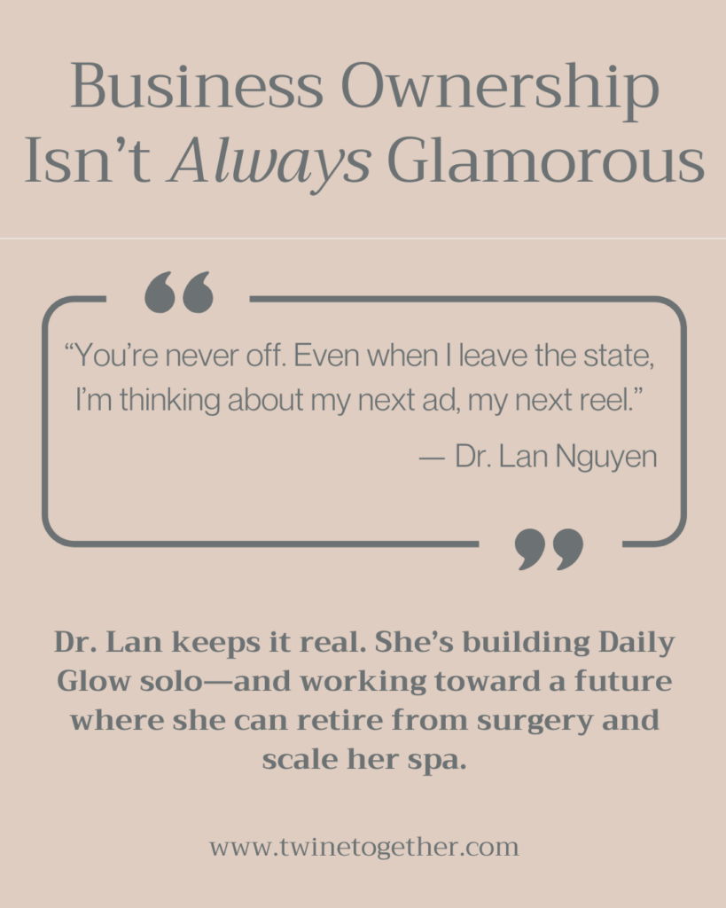Dr. Lan Nguyen is not your average business owner. She’s a board-certified orthopedic traumatologist, recognized for multiple years as one of San Diego Magazine’s Top Doctors, and holds the rare distinction of being the only Vietnamese female orthopedic traumatologist in the world. She’s also the founder of Daily Glow Aesthetics and BioAge Medicine, a rejuvenation medicine practice born from her personal health journey and a deep commitment to helping others age vibrantly.