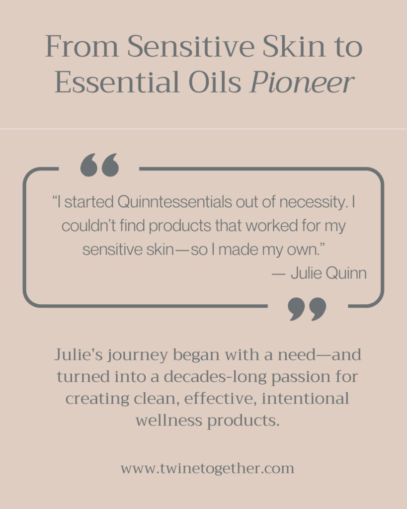 Julie Quinn is the founder and formulator behind Quinntessentials, a product line of thoughtfully made essential oils, body sprays, salves, and custom formulations—all rooted in healing, intention, and a deep respect for nature.