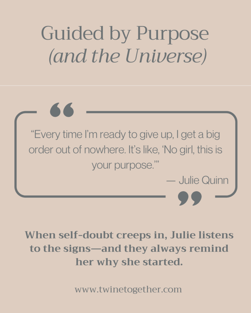 Being a solopreneur isn’t always easy. From shipping mishaps to self-doubt, Julie’s faced plenty of tough moments. But she says the universe keeps showing up with reminders to keep going.