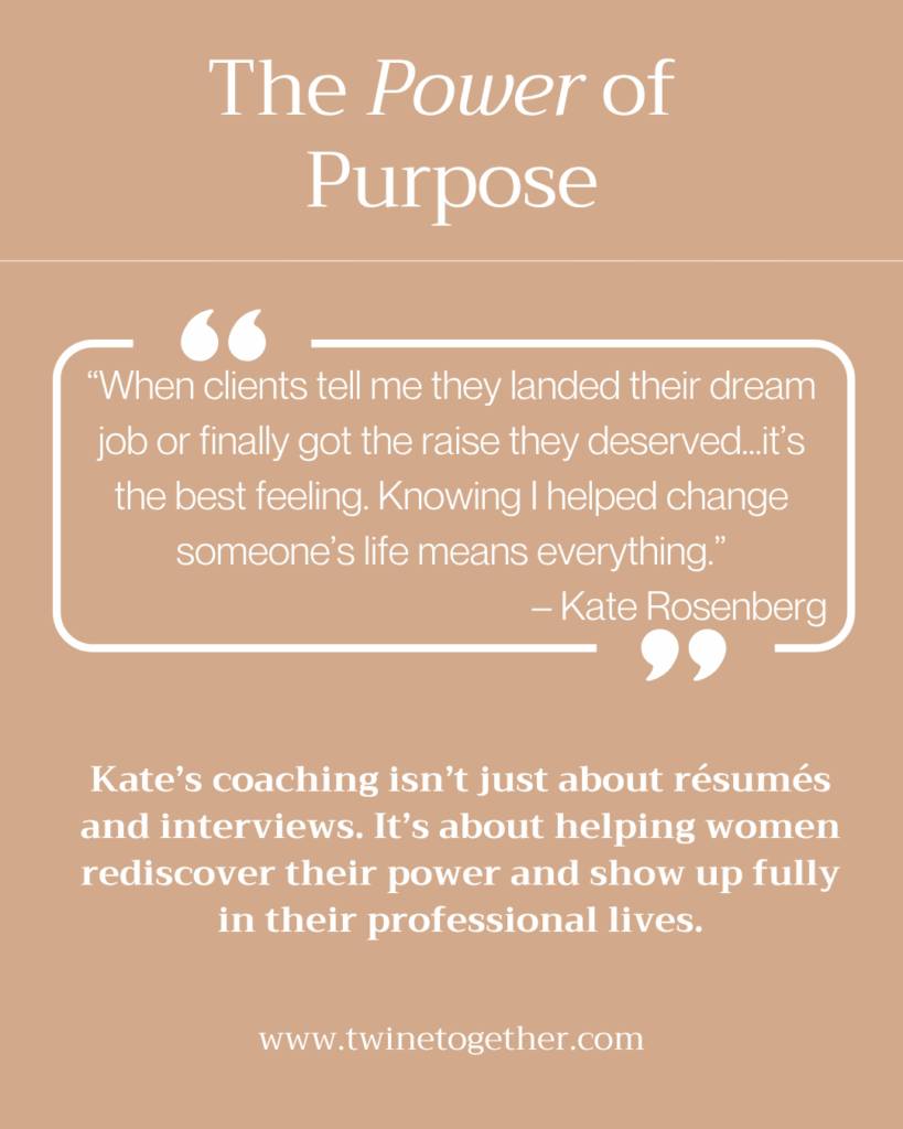 For Kate, coaching isn’t just about finding a new job. It’s about redefining how women show up in their careers. Her clients are often navigating layoffs, career pivots, or leadership transitions. But they share one goal: to take control of their professional stories.