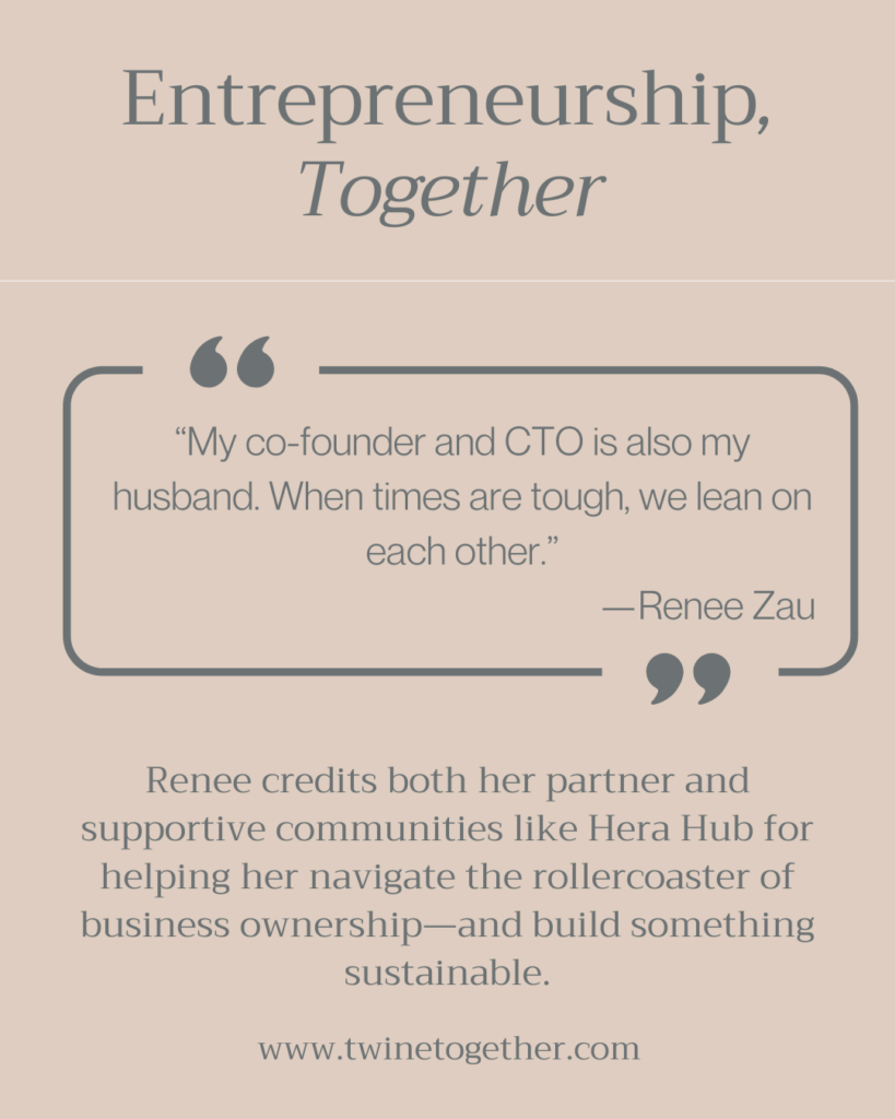 “Having my co-founder also be my spouse means we’re in it together. And Hera Hub has been incredible—there’s so much wisdom in that community. I’ve learned about everything from marketing to compliance just by listening.”
