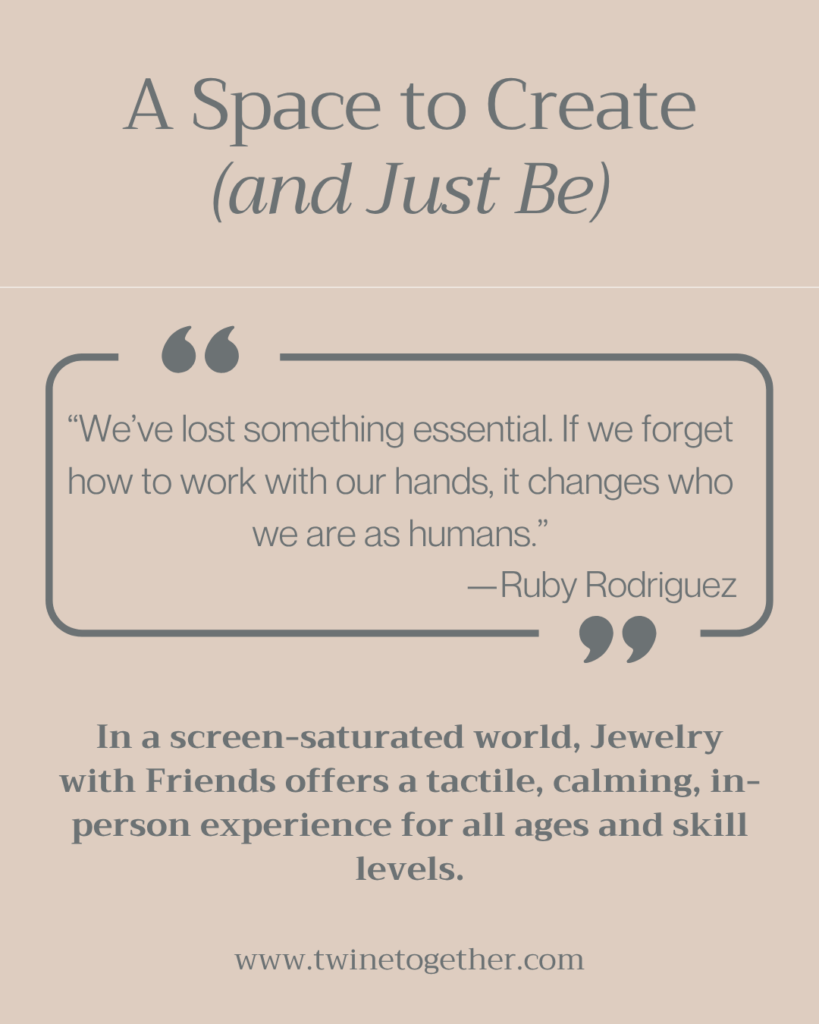 When you step into Jewelry with Friends, you’re not just walking into a shop or a studio—you’re stepping into a space designed to reconnect people with their creativity, their community, and their hands.