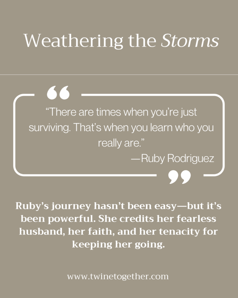 Through it all, she credits her fearless husband, her faith, and her determination to weather every storm.