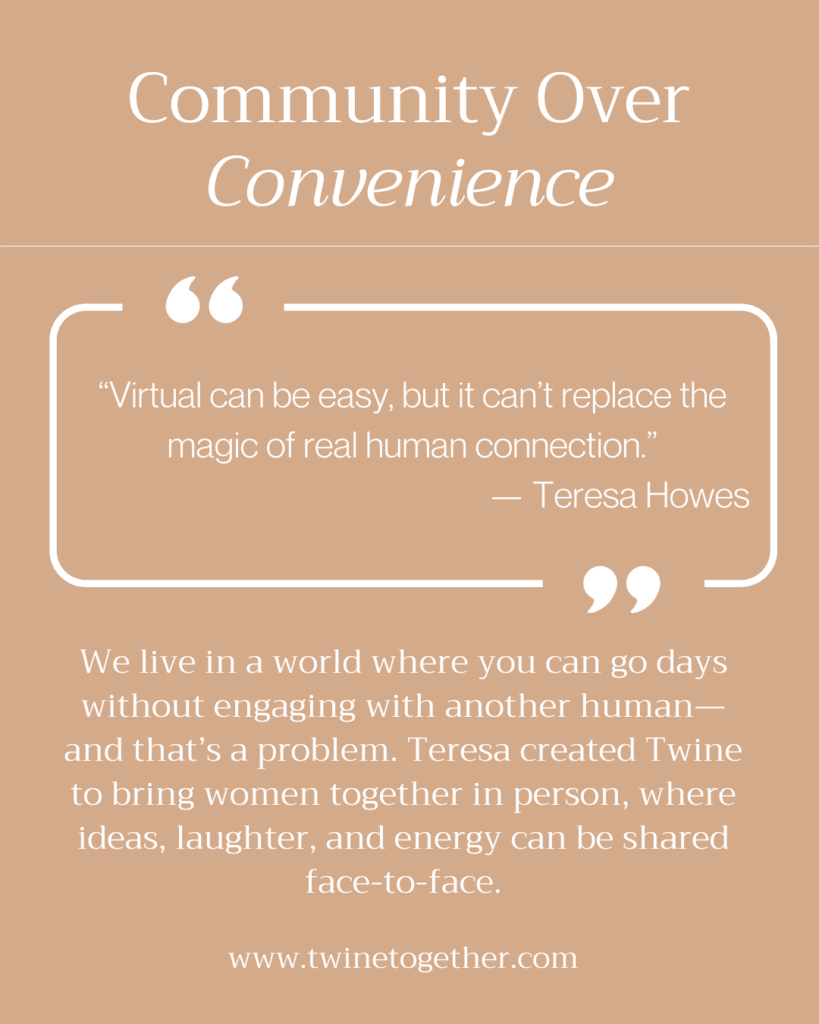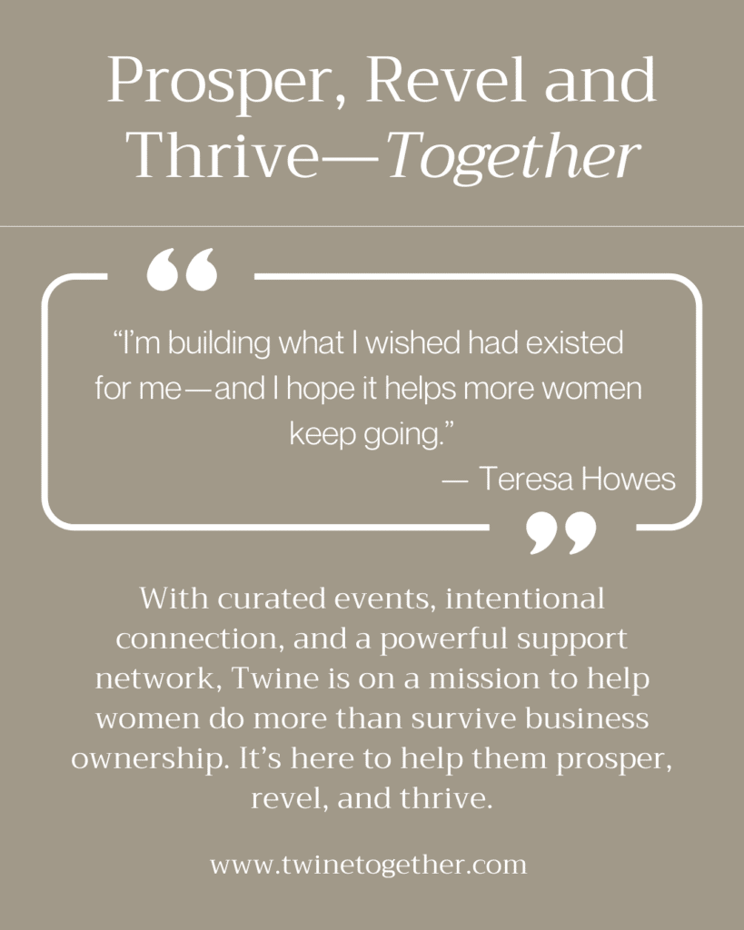 Teresa created Twine to fill a gap she—and countless other women—felt while navigating life as solopreneurs and small business owners. What she needed wasn’t another online course or digital download. She needed people. A sense of community. Consistent, in-person connection with other women who truly understood the highs, lows, and everything in between.